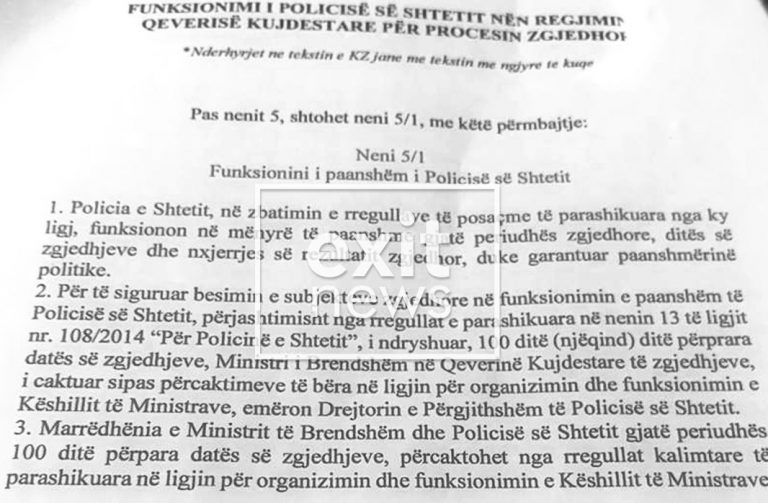 PD i ka paraqitur, sot, tryezës katërpalëshe të Këshillit Politik një propozim në dukje teknik, për rolin e policisë në zgjedhje, një kopje të të cilit e ka shqyrtuar Exit News. (kliko këtu)