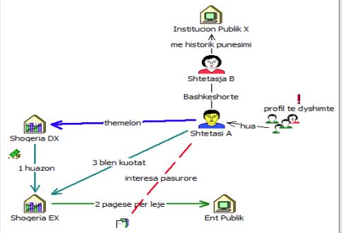 Verifikime të mëtejshme treguan se leja e miratuar, lidhej drejtpërdrejtë me interesat pasurore të shtetasit A. Më tej, ky shtetas, bleu shumicën e kuotave të shoqërisë “EX” (të cilës i kishte dhënë hua, nëpërmjet shoqërisë “DX”), në vlerë 1 milion EUR, duke përforcuar dyshimet për krijimin e një skeme me qëllim humbjen e gjurmëve lidhur me përfituesit fundor të lejes, mënyrës së grumbullimit të fondeve dhe arsyet e huadhënieve në favor të një subjekti, të cilit i mungonte eksperienca e duhur në sipërmarrjen e iniciuar rishtazi.