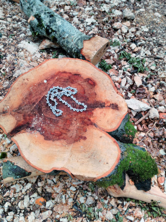 Një zinxhir sharre shihet në një trung ahu në Parkun Kombëtar Shebenik – Jabllanicë.