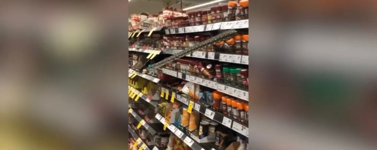 Një kalim i shpejtë për disa ushqime në supermarket u shndërrua në një shpëtim gjarpri për një grua australiane në momentin kur mes raftit të supermarketit doli një piton.