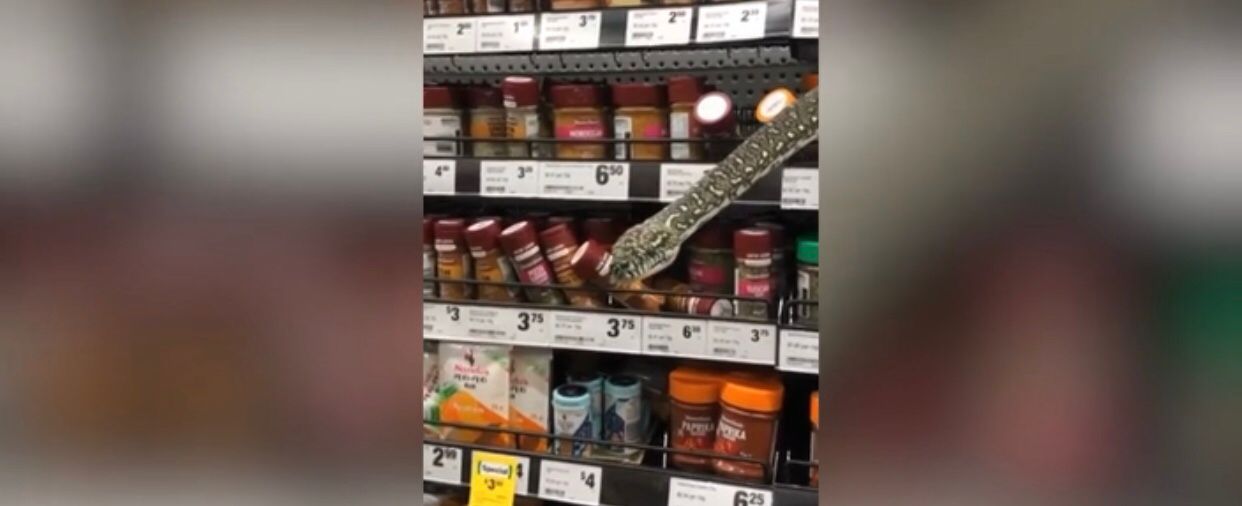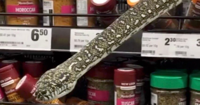 Si skenë nga Harry Potter, gjarpri del nga raftet në supermarketin e Sidneit