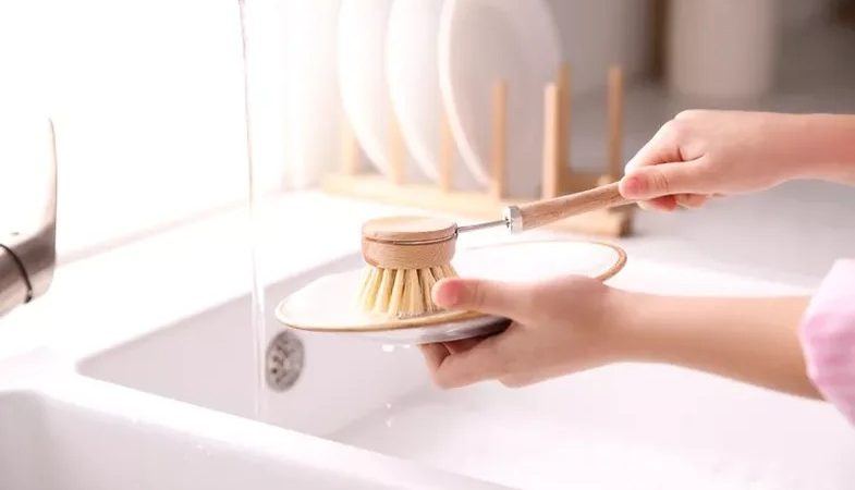 Sfungjerët janë të përshtatshëm, por shpesh prishin estetikën e një kuzhine të rregullt dhe mbajnë mikrobe që përfundojnë në duart tuaja nëse nuk pastroni me doreza. Një furçë enësh jo vetëm që e bën punën më mirë dhe i mban duart të pastra, por duket më bukur e vendosur pranë lavamanit të kuzhinës.