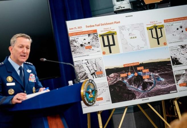 “Nuk krijohet një vendndodhje si kjo, nëse ke një program paqësor”, tha Caine. Para se të shpjegonte se si armët e përdorura në sulme – GBU 57, bomba që peshojnë mbi 13 tonë që mund të depërtojnë në shtresa betoni për dhjetëra metra para se të shpërthejnë – ishin “projektuar, planifikuar dhe lëshuar” për të arritur objektivin e tyre.