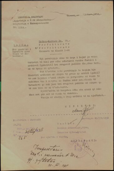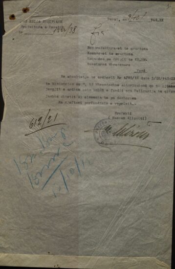 Autoritetet vendase urdhëruan: “Të gjithë jevgjit e ardhur nga Bullgaria të qiten jashtë shtetit si elementa të pa dëshëruem”. Urdhri jepet prej Ministrisë së Punëve të Brendshme dhe u dërgohet për zbatim gjithë prefekturave të Shqipërisë. Në dokumentin që paraqesim, prefekti i Beratit, qytetit që shpëtoi numrin më të madh të hebrenjve gjatë Holokaustit, përcjell urdhrin e Ministrisë dhe pret njoftim për përfundimin e veprimit. Nuk dimë a u zbatua, apo në ç’masë u zbatua urdhri. Dokumenti përfaqëson, gjithsesi, qëndrimin zyrtar të qeverisë së kohës.