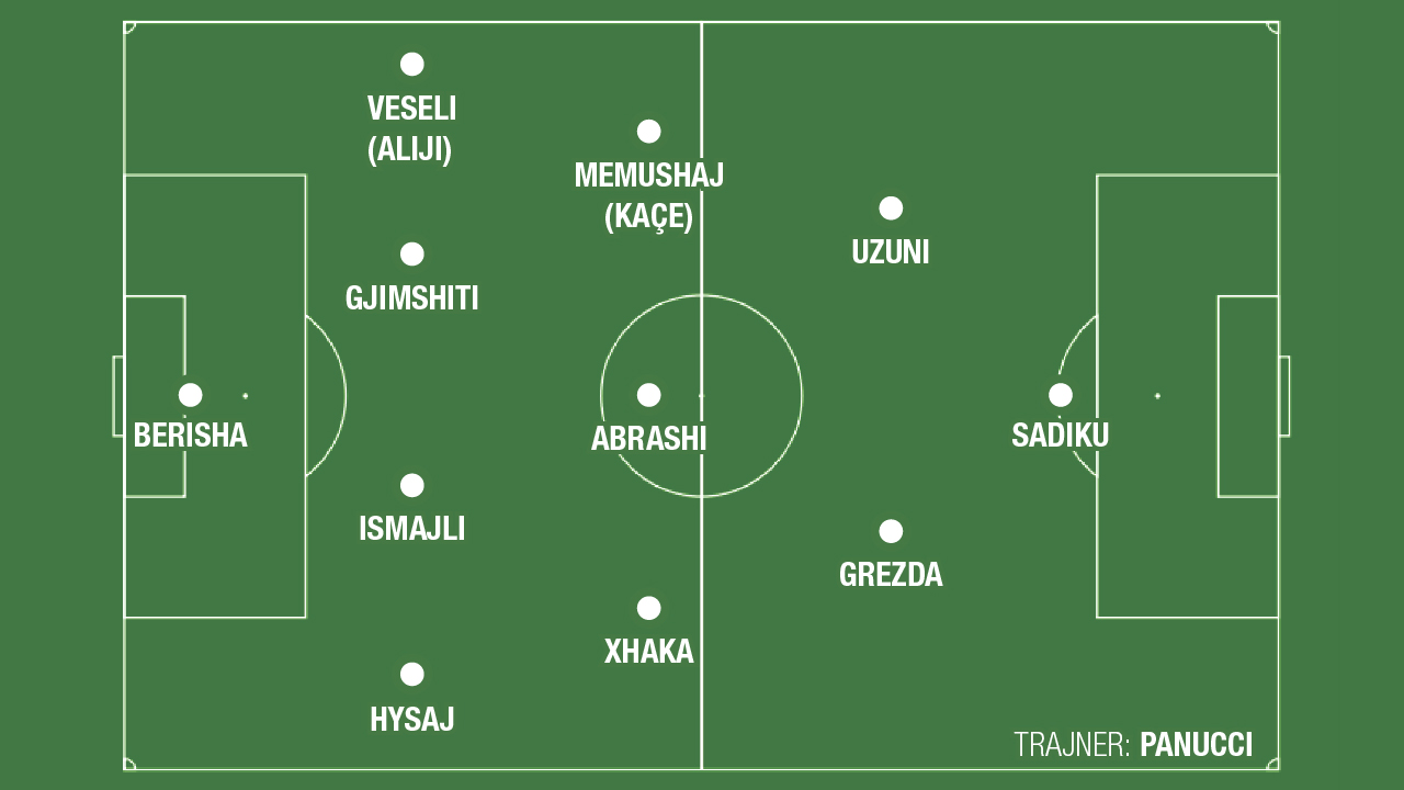 Një tjetër rikthim i rëndësishëm në Kombëtare është ai i Armando Sadikut, i cili do të zërë vend në majën e sulmit. Autori i golit të vetëm në Europianin e Francës, vjen pas një dëmtimi, që e la jashtë për një kohë të gjatë. Trajneri Panuçi ka në dispozicion vetëm dy sulmues qendre, Sadikun dhe Balajn, por me siguri do t’i besojë të parit në këtë 90-minutësh. Sadiku do të mbështetet nga krahët nga Uzuni dhe Grezda, gjithmonë nëse nuk do të kemi ndonjë surprizë të minutave të fundit nga trajneri italiani. Ditën e fundit të përgatitjeve ka pasur probleme edhe për Ylber Ramadanin, i cili u thirr për të zëvendësuar Andi Lilën e dëmtuar.