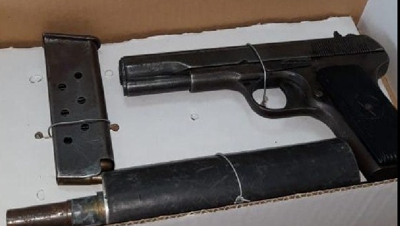 Gjatë kontrollit në automjet policia gjeti dhe sekuestroi një armë zjarri pistoletë me silenciator së bashku me karikator me fishekë, si dhe një dozë me lëndë narkotike Kanabis Sativa.
