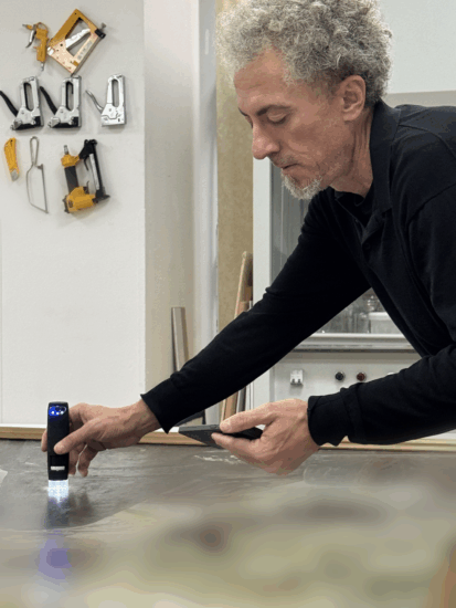 “Kjo është vepra e parë e komisionuar që i mbetet përgjithmonë Galerisë së Arteve. Që në momentin që mora ftesën nga GKA, unë kisha gati konceptin që prej punës në Budapest. Drejtoresha Adela Demetja ishte shumë e hapur ndaj propozimit. Galeria ishte në rikonstruksion, por pak ditë para ekspozimit u hoqën skelat dhe puna u bë më e lehtë. Sigurisht, kërkon shumë kujdes të punosh me fonde milionëshe dhe koleksione kaq delikate.”