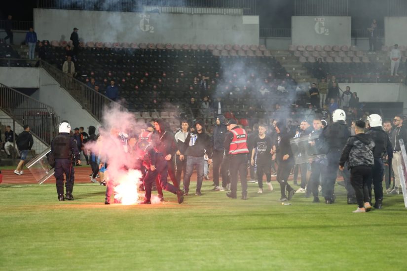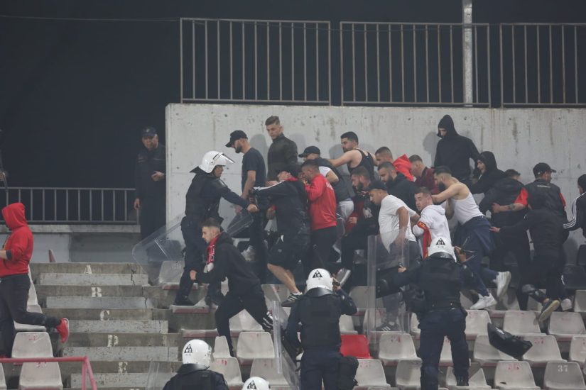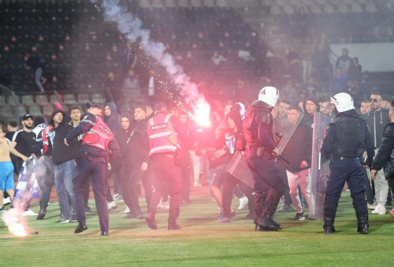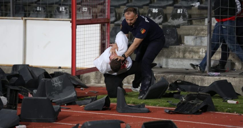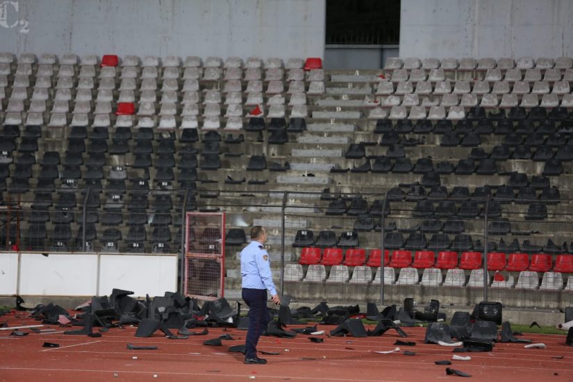 Pas përfundimit të ndeshjes, tifozët ultras kryeqytetas, kryesisht ata të Partizanit, u shfaqen si huliganë të vërtetë, duke u përplasur me policinë dhe duke shkatërruar stolat e stadiumit. Këto foto flasin qartë për aktet e dhunës së tyre.