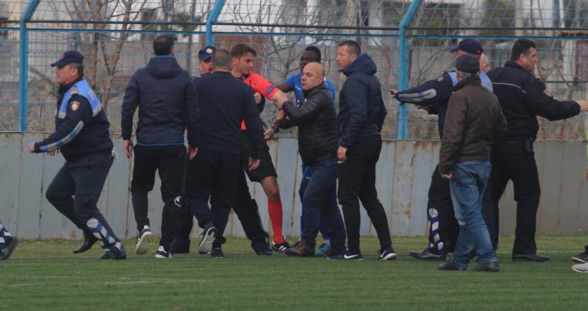 Presidenti Naim Qarri dhe një sërë zyrtrarësh dhe tifozë hynë në fushën e lojës, duke qëlluar arbitrin Eldorian Hamiti. Stjuartët kanë hyrë në fushën e lojës dhe kanë shmangur dhunën e mëtejshme. Gjithashtu ka pasur dhe presion nga tifozët për të fikur kamerat e ‘Superpsortit” që po transmetonte ndeshjen drejtpërdrejtë.