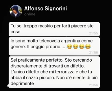 Opinionisti i Showbizz-it, Alessandro Rosica komentoi gjithashtu në Instagram: “Fatkeqësisht, mund ta konfirmoj që gjithçka është e vërtetë. Sistemi Signorini ka qenë gjithmonë kështu. Bisedat dhe telefonatat e tij kanë qarkulluar për vite me radhë, ishte vetëm çështje kohe. Ai madje provoi ta bëjë edhe me mua, por kur kuptoi që unë nuk isha përputhje për të, më përjashtoi nga Big Brother dy vjet më parë. Nuk është sekret, e kam treguar në storiet e mia në Instagram. Shumë burra të tjerë nuk kanë pasur forcën time dhe kanë rënë. Po flasim për burra të drejtë me familje pas tyre, jo një, jo dy, jo tre, por shumë. Pas Alfonso-s, do të vijë radha e Piersilvio-s.”