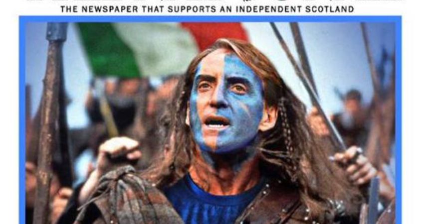 Jo vetëm në rrjetet sociale ka një mobilizim masiv për t’u dërguar mesazhe mbështetjeje Zhorzhinjos me shokë, por sot kanë “zbritur në fushë” edhe të përditshmet kryesore skoceze, si “The National”, që ia ka dedikuar faqen e parë imazhit të Roberto Mançinit në versionin “Braveheart”, si Mel Gibson në filmin e famshëm, me fytyrën të ngjyrosur me blu dhe të bardhë, ngjyrat e Skocisë.