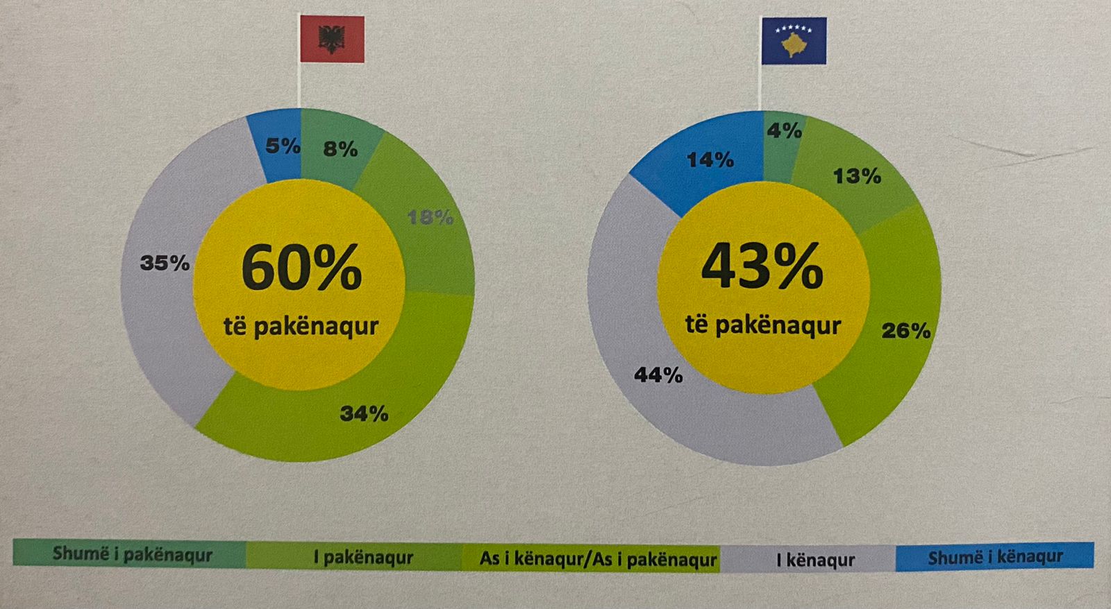 Nga 519 punonjës të anketuar atje, vetëm 48% e punonjësve janë shprehur të pakënaqur kundrejt 60 për qind që ishin në Shqipëri.