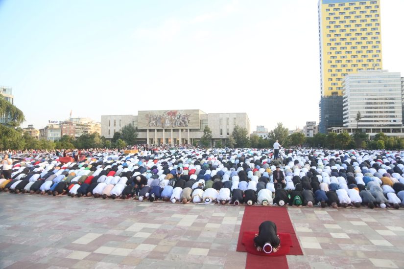 Gazeta Si – Mijëra besimtarë myslimanë u mblodhën këtë të mërkurë në mëngjes në sheshin ‘Skëndërbej’ për faljen e namazit të Kurban Bajramit. Falja nisi në orën 06:00.