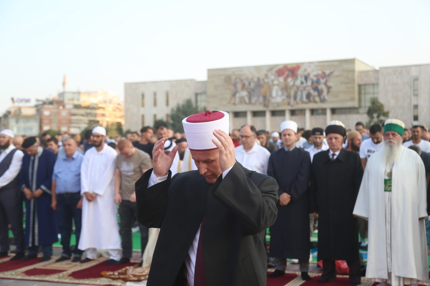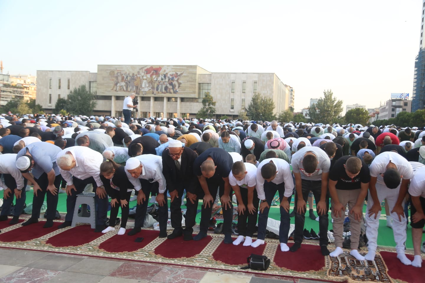 Gazeta Si – Mijëra besimtarë myslimanë u mblodhën këtë të mërkurë në mëngjes në sheshin ‘Skëndërbej’ për faljen e namazit të Kurban Bajramit. Falja nisi në orën 06:00.
