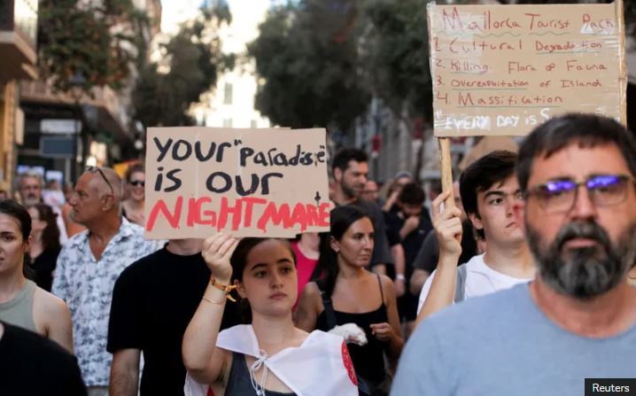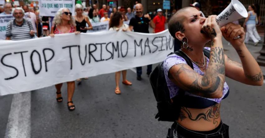Të dielën vendasit në qytetin bask të San Sebastian dolën në rrugë me banderola: “Jemi në rrezik; reduktoni turizmin!”, “Turistë, shkoni në shtëpi”.