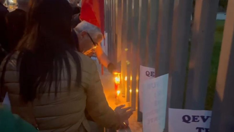Protesta u thirr nga ish-kryeministri Sali Berisha një ditë më parë dhe qytetarët kanë ndezur qirinj për 31-vjeçarin që dyshohet se u vetëvar me lidhësen e kapuçit të bluzës.
