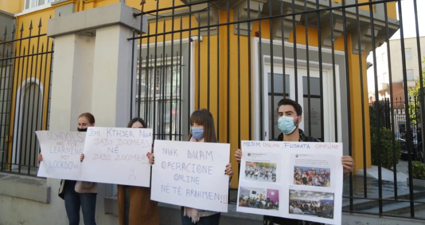 Dy ditë para se të niste mësimi në universitete, zëvendësministrja e Shëndetësisë, Mira Rakacolli, deklaroi se këshillonte që universitetet të bëjnë mësimin online. Kjo solli një shqetësim tek studentët se shumica e tyre kishin paguar qiranë, konviktin dhe tarifën e shkollës. Për shkak të kësaj kakofonie të madhe ku askush nuk ishte i sqaruar, studentët mbajtën një protestë dy ditore përballë Ministrisë së Arsimit. Protesta e studentëve e pati zanafillën nga reagimet në rrjete sociale, ku diskutonin për ankesat dhe problemet e tyre. Gjatë ditëve të protestës, studentët treguan për Gazetën “Si” se ju ishte komunikuar që studentët të cilët ishin në punë në Tiranë dhe kishin paguar konviktin, mund të qëndronin në konvikt duke paraqitur një vërtetim nga punëdhënësi.