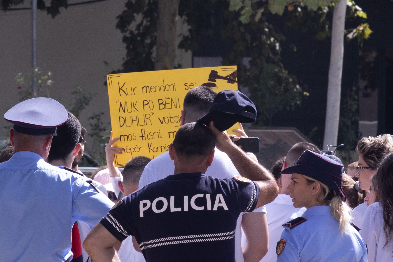 “Kemi nja një muaj që protestojmë, por kjo nuk do të thotë se do të ndalemi sot. Jua kemi thënë dhe në komision, edhe në intervista, edhe në protesta që ne do e çojmë në Gjykatë Kushtetuese çështjen. Jua kemi thënë dhe që studentët do të bojkotojnë vitin akademik”, tha një prej studenteve që proteston.