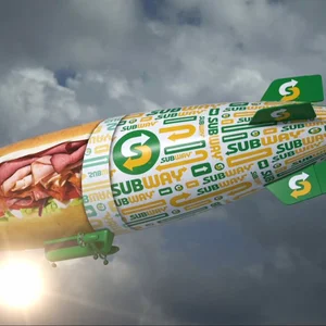 Zinxhiri i sanduiçëve Subëay ka nisur një strategji të vecantë marketingu. Kompania ka krijuar një mjet fluturues 55 metra që do të shëtisë klientët ndërkohë që darkojnë. Por mjeti nuk është aspak i thjeshtë por është një mjet në formën e një  sanduiçi Subway.