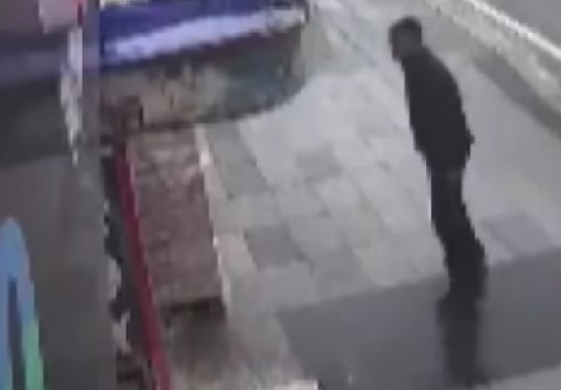 Në një video të tmerrshme, vrasësi me thikë mund të shihet duke kaluar pranë një dyqani përpara se të ndalojë papritur dhe të kthehet për të goditur me thikë një nga viktimat e tij.