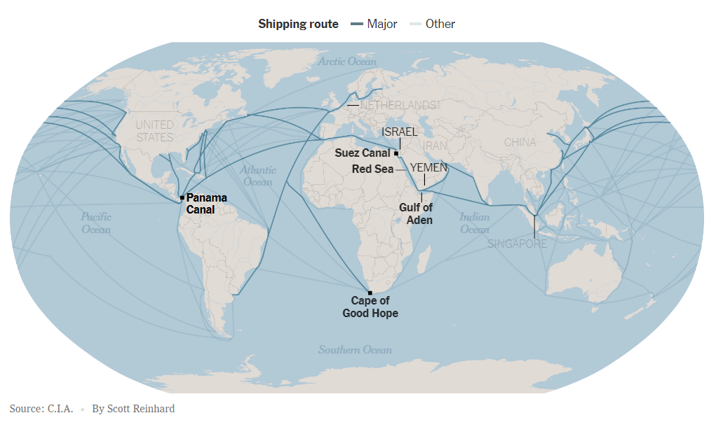 Bllokimi i Detit të Kuq vjen pasi Kanali i Panamasë, po përjeton një thatësirë dhe aty mund të kalojnë shumë pak anije. Kjo kishte detyruar shumë anije të zgjidhnin një rrugë më të gjatë për në Shtetet e Bashkuara përmes Kanalit të Suezit.