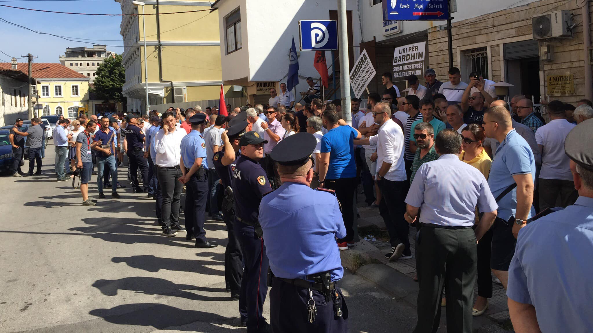 Edhe të premten mbrëmë, pas mbylljes së protestës së opozitës para Kryeministrisë, qytetarët e ardhur nga Shkodra me në krye kryebashkiaken Voltana Ademi e zhvendosën protestën e tyre para Drejtorisë së Policisë ku kërkuan lirimin e ish-deputetit të këtij qyteti Bardh Spahia.