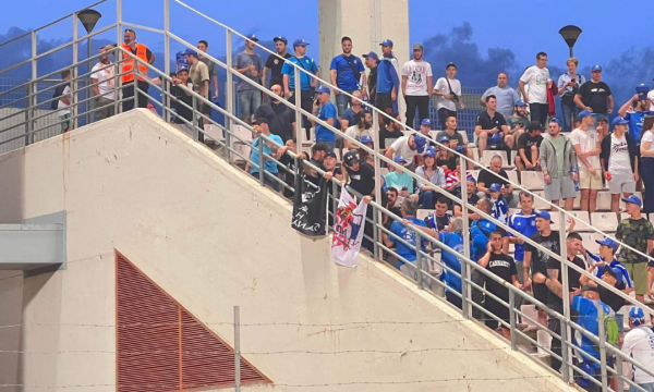 Pjesa e dytë ka qenë më e tensionuar dhe ka pasur një përplasje mes dy tifozerive. Drejt sektorit të tifozëve kosovarë janë hedhur sende, shishe dhe fishekzjarre.