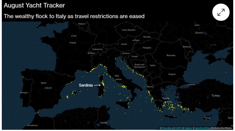 Për pesë ditë, sipas Bloomberg, në Itali kanë shkuar 228 super jahte. 20 më shumë se viti i shkuar. Greqinë e vizituan 60 më shumë këtë vit, ndërsa SHBA-ja është më mbrapa me numrat krahasuar me vitin 2020.