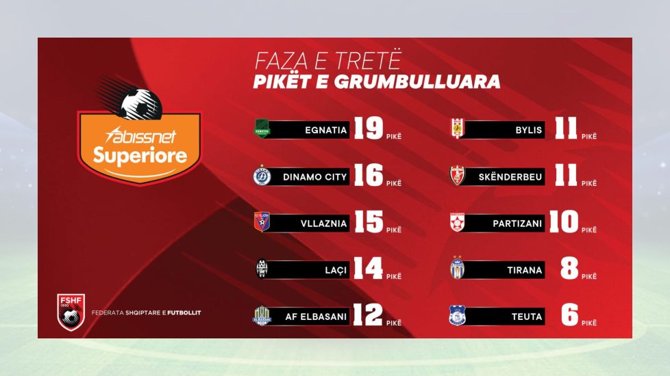 Ndërsa Dinamo City do të provojë që Egnatia të ketë fatin e Laçit dhe Tiranës. Të enjten luhen 3 takimet përmbyllëse ku AF Elbasani dhe Laçi “kanë” në dorë fatin e Skënderbeut dhe Tiranës. Korçarët shkojnë pas dy fitoresh në “Elbasan Arena” ndërsa Tirana provon të ndalë humbjet rradhazi. Bylis dhe Teuta mbyllën 27 javë me pikë të barabarta dhe për të ruajtur mbijetesën do të ndeshen në “Adush Muça”. Në 5 ndeshjet e fundit miqtë kanë marrë 1 pikë më shumë se vendasit. Në përfundim të ndeshjeve në fazën e tretë, skuadra më e mirë konfirmohet Egnatia. Laci vjen në vendin e 4 dhe bie në sy performanca shkatërruese e Partizanit që ka bërë edhe më keq se Skwnderbeu. Tirana dhe Teuta ishin dy skuadrat më të dobëta gjatë kësaj faze.