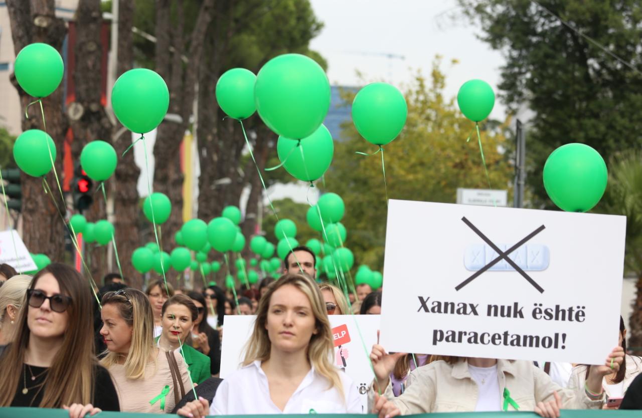Me pankarta ndërgjegjësuese si “Xanax nuk është paracetamol” dhe “Jo çdo gjë zgjidhet me shokët”, ishin të shumtë njerëzit që mbushën sheshin “Skënderbej” ku më pas u nisën drejt sheshit “Nënë Tereza” ku lëshuan 300 tullumbace të gjelbërta.