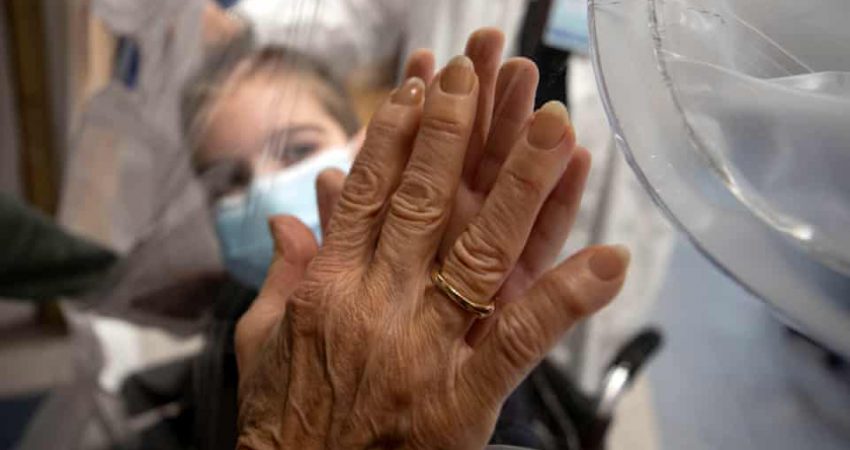 Një fëmijë i shtruar në Spitalin e Romës, Itali ka takuar gjyshen e tij në mënyrën që takohemi tani gati me këdo…një prekje dore me plastmasin në mes./The Guardian