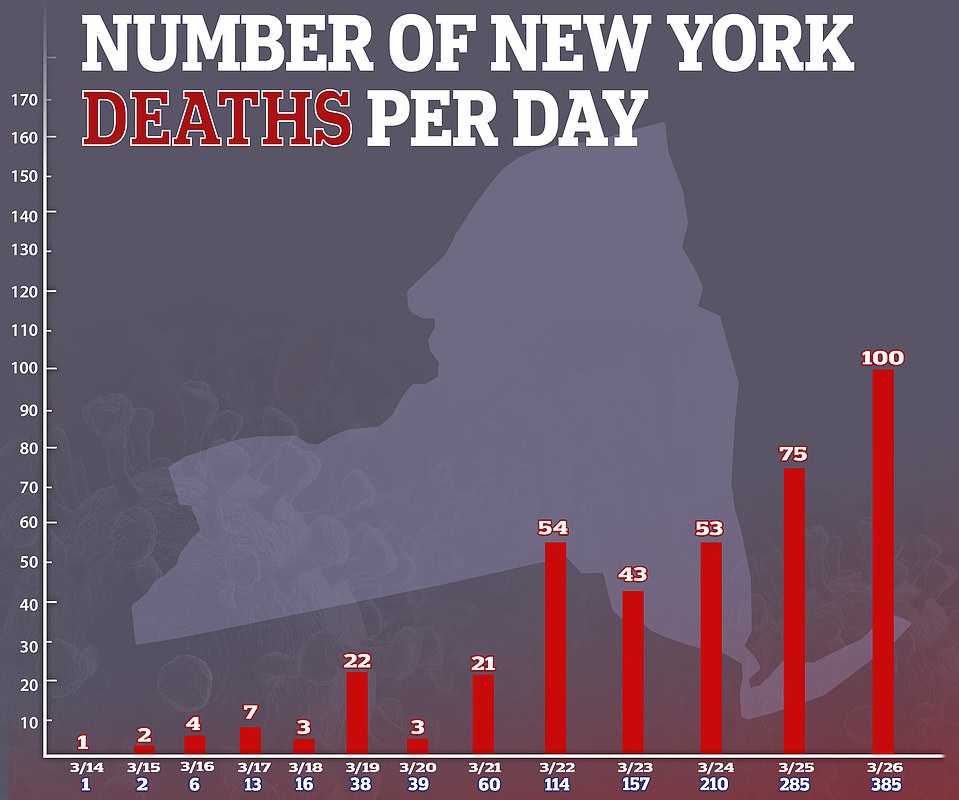 Nju Jorku të enjten regjistroi 100 vdekje nga koronavirusi në vetëm 24 orë, duke e çuar numrin e të vdekurve në këtë shtet në 385, ndërsa në të gjithë Amerikën në 1205 viktima.
