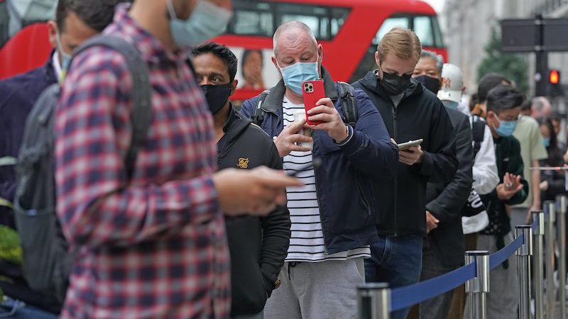 Blerësit janë fotografuar duke qëndruar në radhë para dyqaneve të Apple në Londër, si dhe qytete në Rusi, Kinë, Singapor, Australi dhe më shumë, në një përpjekje për të qenë disa nga të parët në botë që do të bëhen pronarë të iPhone 13.