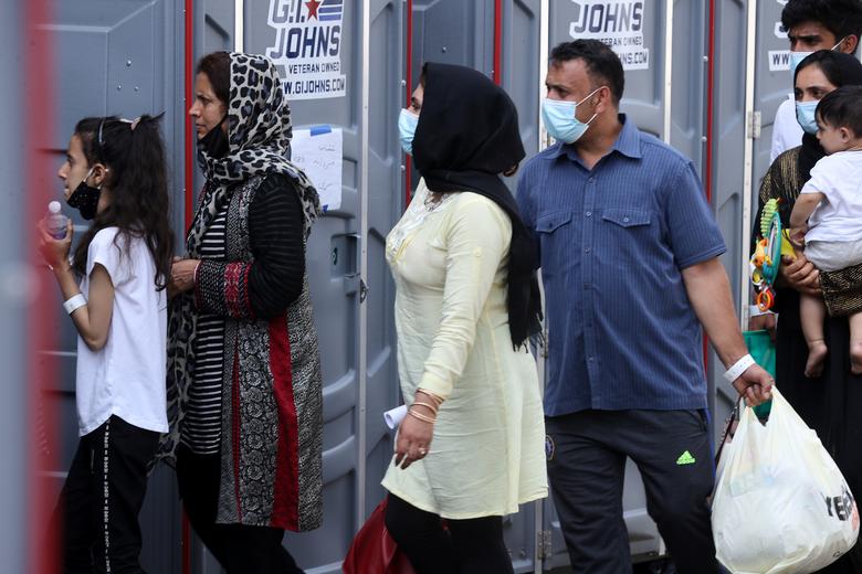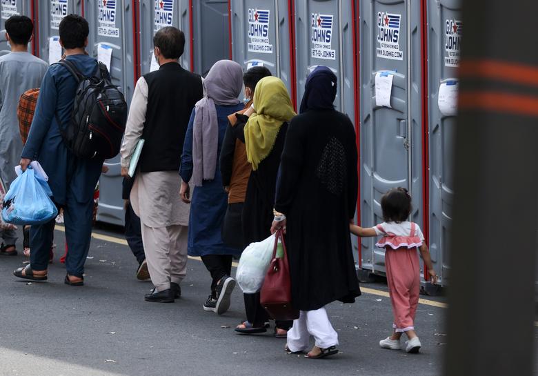 Një grup afganësh përfshirë të rritur dhe fëmijë kanë mbërritur në një qendër refugjatësh të evakuuar nga Afganistani në Qendrën Ekspo Dulles pranë Aeroportit Ndërkombëtar Dulles në Chantilly, Virginia,SHBA./Reuters/