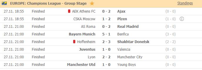 E nisur me ndeshjet e pasdites Ajaksi ka fituar në Athinë me AEK pavarësisht trazirave që ndodhën në stadium. Edhe Pilzen ka triumfuar në fushën e CSKA në shifrat 1-2.