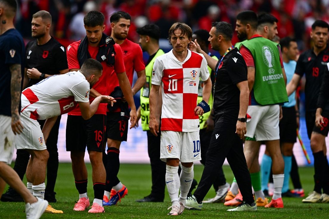 Shqiptarët i panë yjet kroatë dhe erdhën për t’i mbështetur, ndërsa ylli i Interit, Kristjan Asllanni, iu afrua Modriçit, i zgjati dorën dhe e ngriti nga fusha.