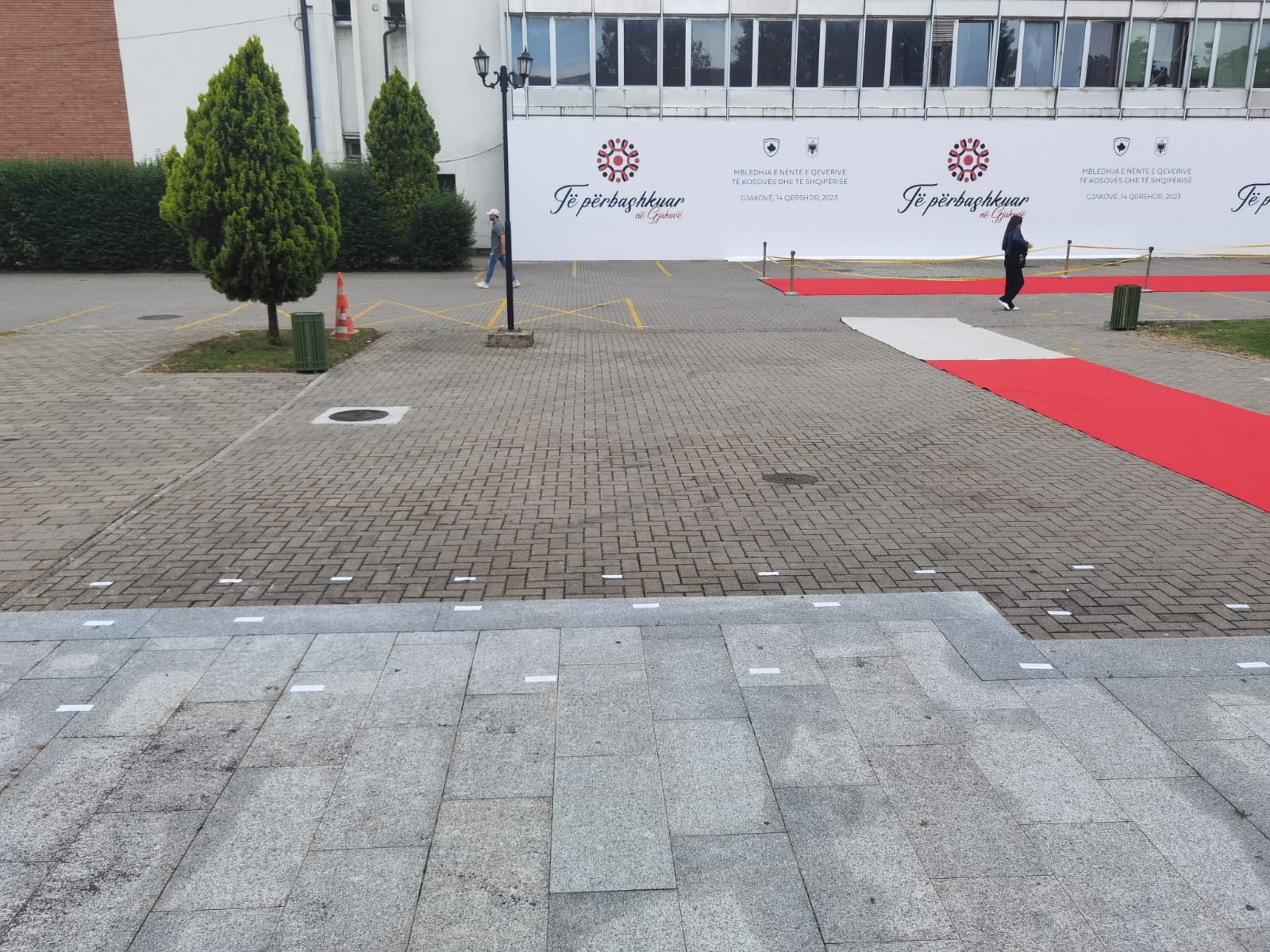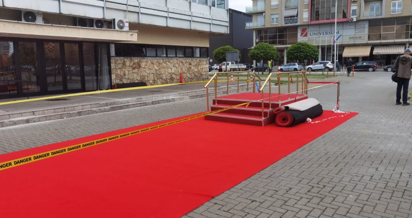 Ndonëse mbledhja e Shqipërisë dhe Kosovës e parashikuar për t’u zhvilluar sot në Gjakovë u anulua një ditë më parë, atje qëndron ende tapeti i kuq ku do të zhvillohej pritja e delegacionit shqiptar.