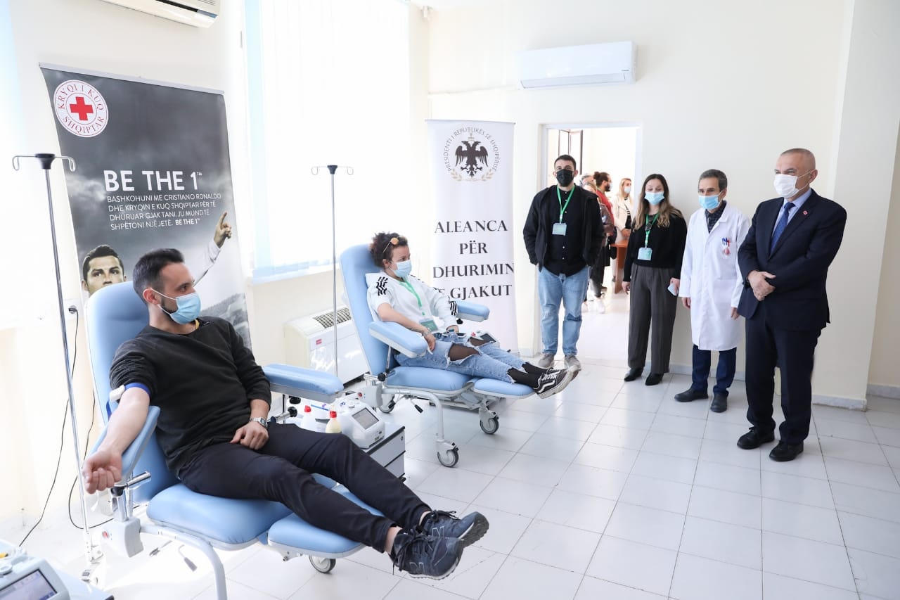 Në kuadër të nismës “Aleanca për Dhurimin e Gjakut”, presidenti Meta ishte sot i pranishëm, në Qendrën Kombëtare të Transfuzionit të Gjakut në Laprakë, për të ndjekur nga afër seancën e radhës të dhurimit vullnetar të gjakut të organizuar nga një grup të rinj italianë, që jetojnë në Shqipëri.