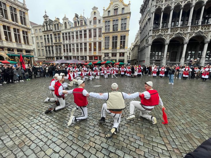 Të rinjtë shqiptare u mblodhën në sheshin “Grand-Place” në Qendër të Brukselit për festën e Pavarësisë. Të veshur me kostume popullore tradicionale shqiptare kanë realizuar një koncert të drejtuar nga “Grupi Vatra”. Ahmet Gjanaj themeluesi i kësaj qendre nëpërmjet një statusi në rrjetin social “Facebook” ka treguar se edhe të rinjtë në Bruksel janë të lidhur me vendin e tyre. Qendra kulturore “Vatra” është themeluar në vitin 2007 dhe jep mësim mbi gjuhën dhe kulturën e shqiptarëve.