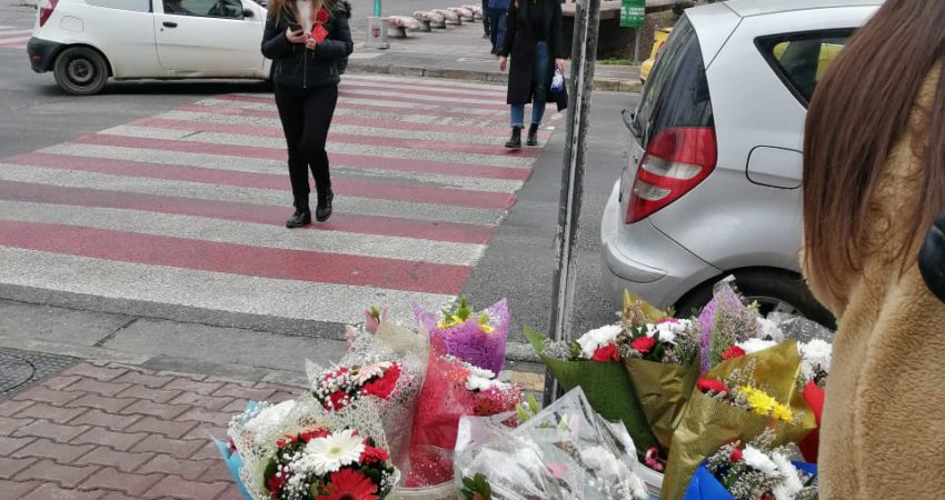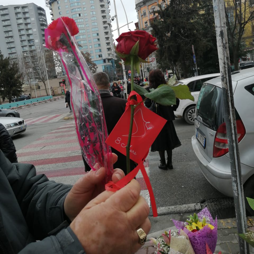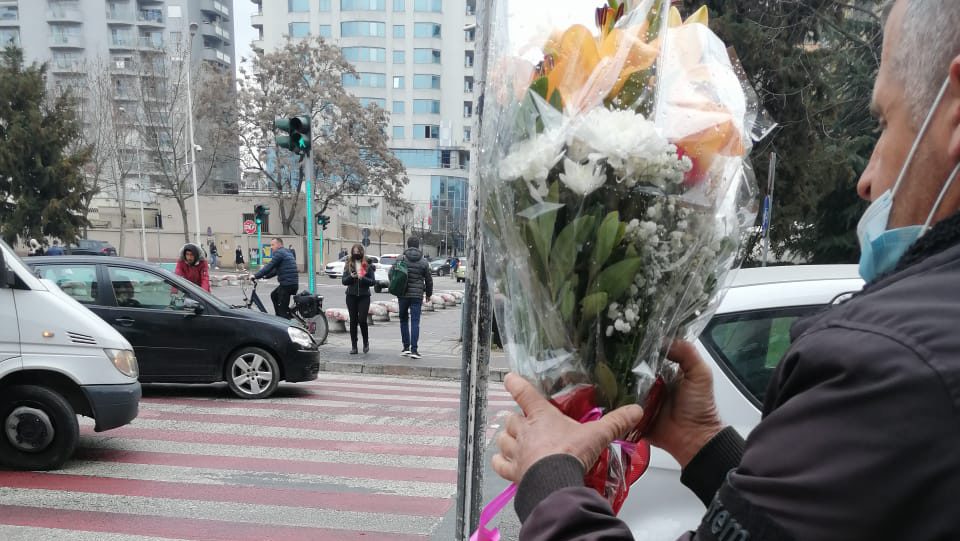 M.S. është një zotëri që zakonisht punon në ndërtim. Por ka mbi 10 vjet që del në rrugë për të shitur lule në 3 ditë të zgjedhura të vitit, Shën Valentin, 7 dhe 8 mars, në një cep trotuari në zonën e ish-Bllokut.
