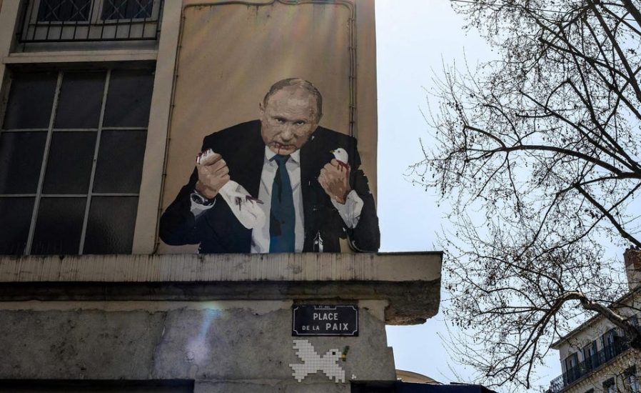 Në rrugët e Parisit, Barcelonës, Romës, Varshavës, Sofjes e qyteteve të tjera po mbijnë skicat e grafikët që dënojnë luftën dhe e paraqesin Presidentin rus si Hitlerin e kohërave moderne, megjithëse vetë shefi i Kremlinit mbron agresionin në Ukrainë me argumentimin se po e “denazifikon” atë.