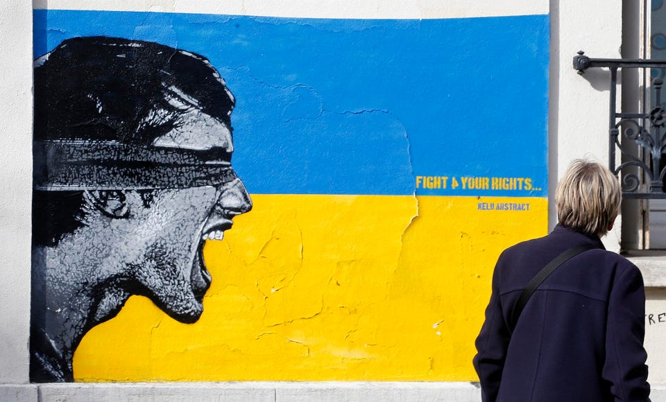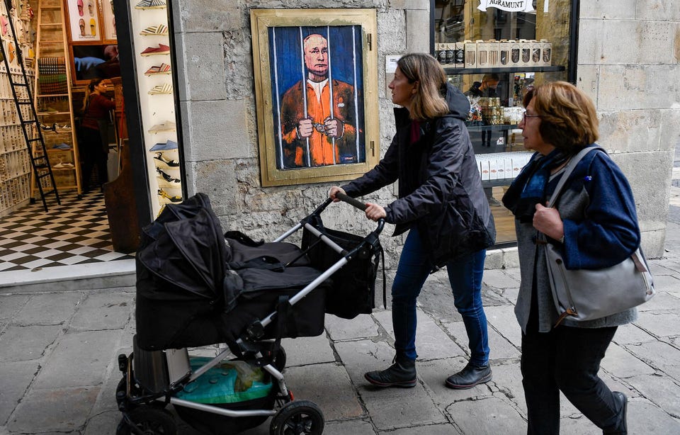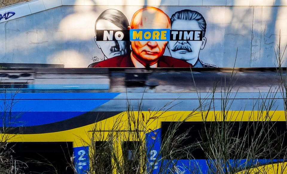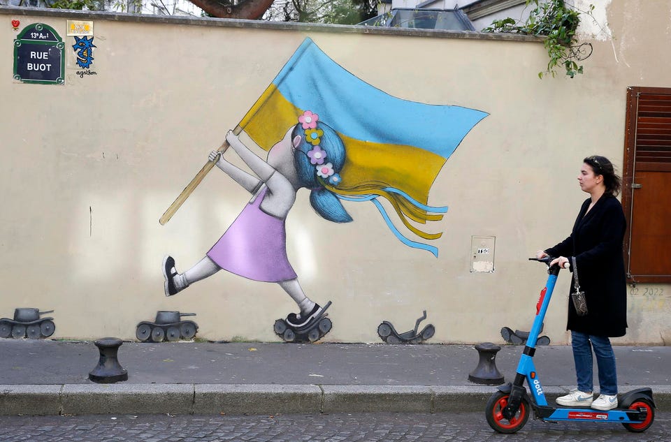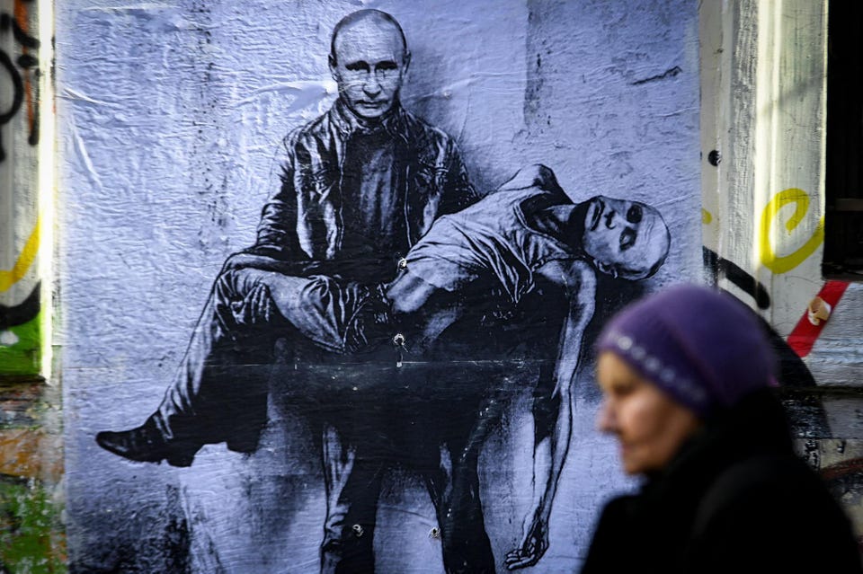 Në rrugët e Parisit, Barcelonës, Romës, Varshavës, Sofjes e qyteteve të tjera po mbijnë skicat e grafikët që dënojnë luftën dhe e paraqesin Presidentin rus si Hitlerin e kohërave moderne, megjithëse vetë shefi i Kremlinit mbron agresionin në Ukrainë me argumentimin se po e “denazifikon” atë.