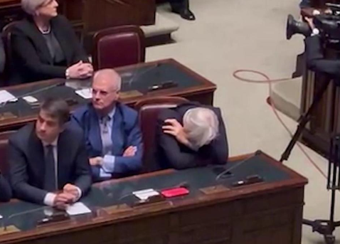 Ditën e djeshme u mbajt edhe ceremonia mortore e ish-presidentit të italisë, Giorgio Napolitano dhe ndërsa mbahej fjalimi në nder të tij, politikani Vittorio Sgarbi bëri një sy gjumë.
