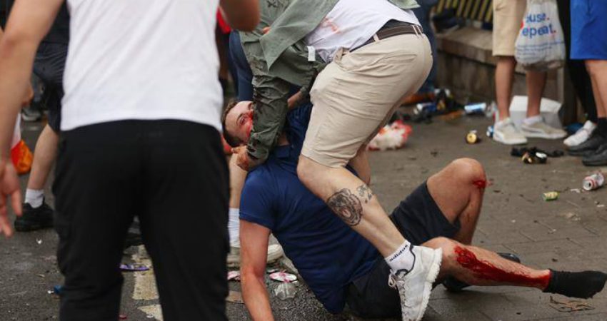 Është dashur të ndërhyjnë agjentët e sigurisë për të qetësuar situatën. Megjithatë, tre tifozë italianë janë sulmuar nga mbështetësit e “Tre Leoni”, sipas AFP-së, edhe pse nuk është raportuar për të plagosur.