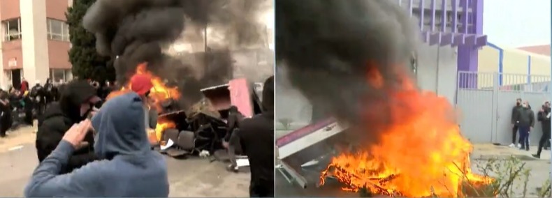 Më pas, ata u futën brenda në godinë, nxorën jashtë objekte që ndodheshin në të dhe u vunë flakën.