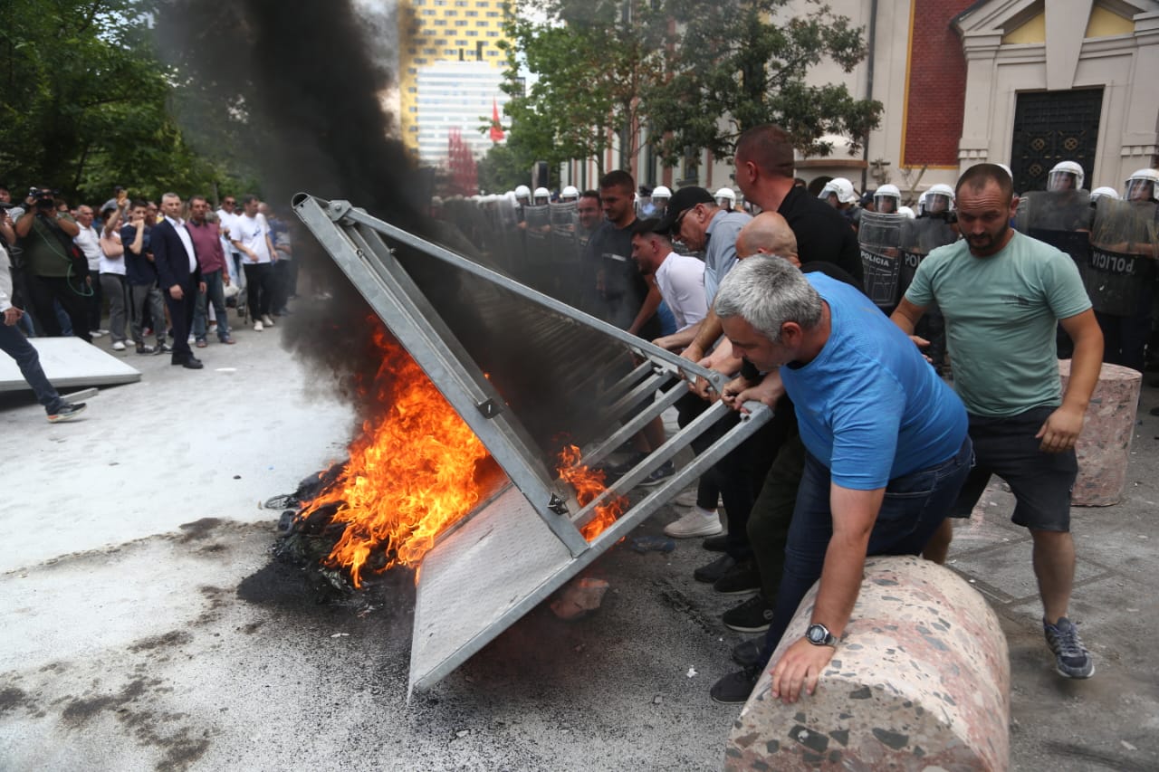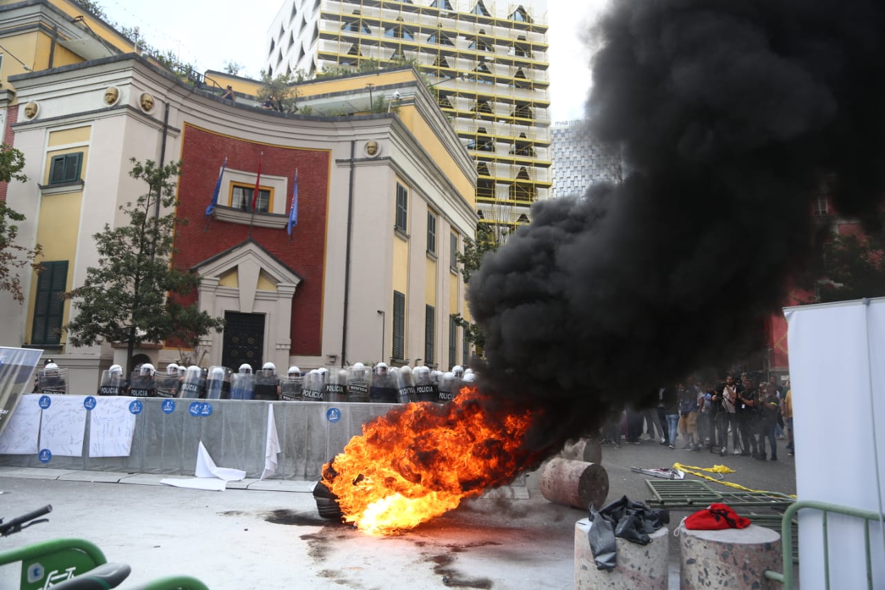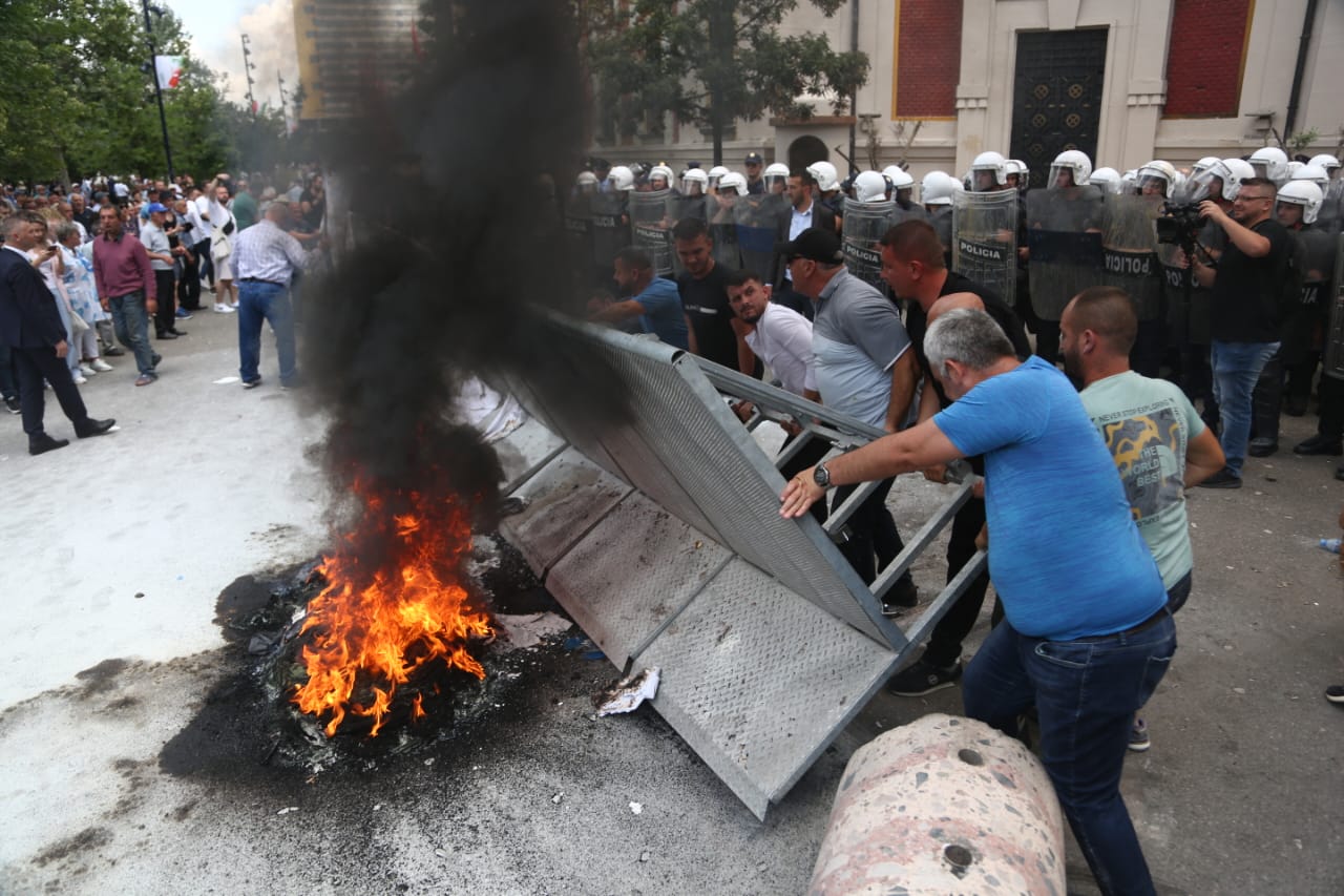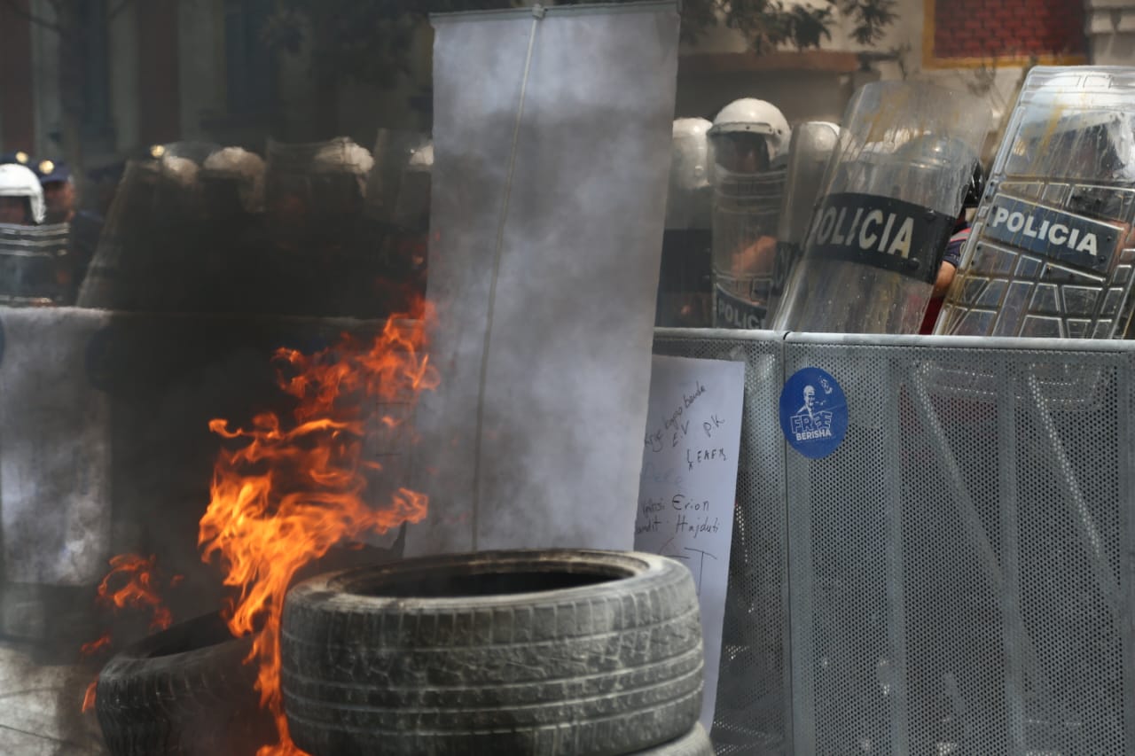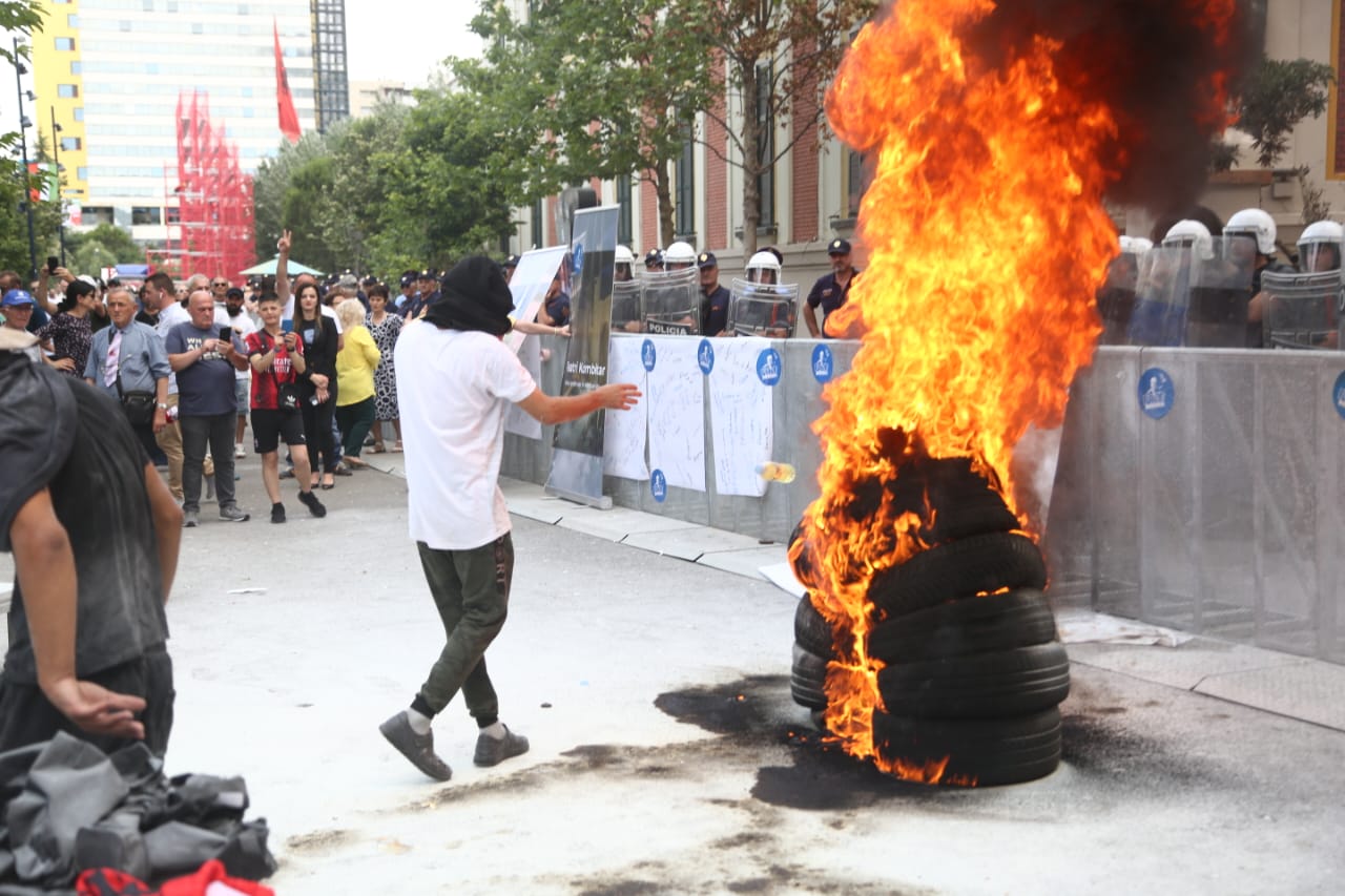 Protesta ka nisur e qetë por ka agravuar pasi protestuesit kanë vënë goma të vjetra para bashkisë dhe u kanë vënë flakën ndërkohë që kanë shkatërruar edhe gardhin metalik të vendosur nga policia. Teksa kanë tentuar të hedhin molotov drejt bashkisë, policia iu është kundërpërgjigjur turmës duke hedhur ujë.