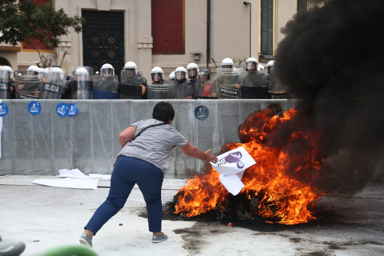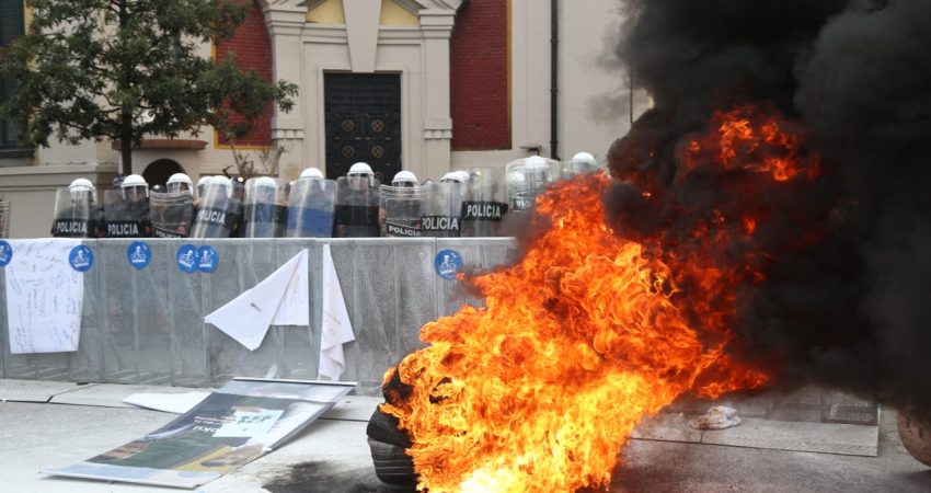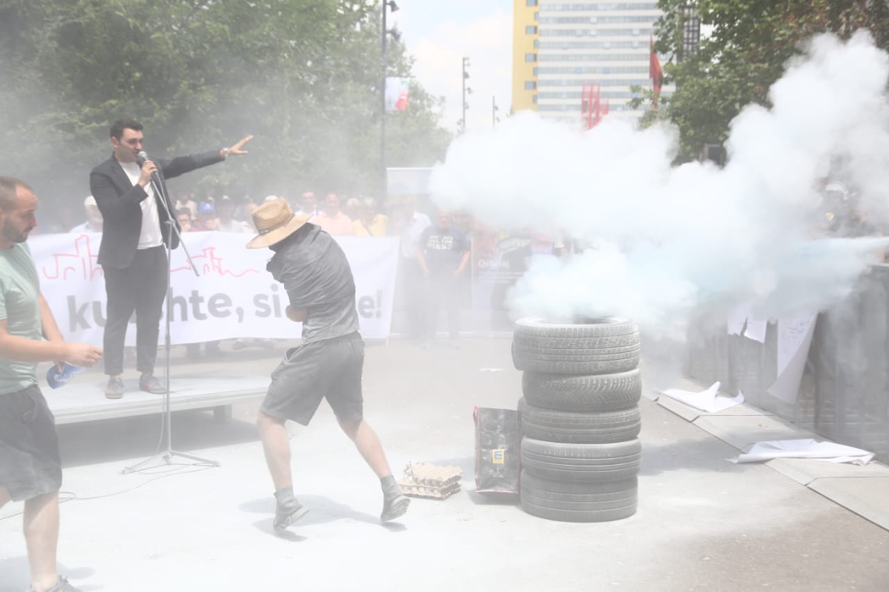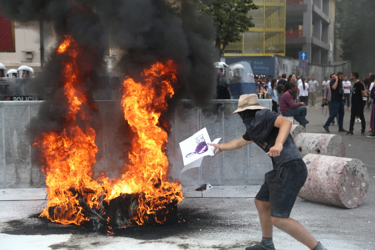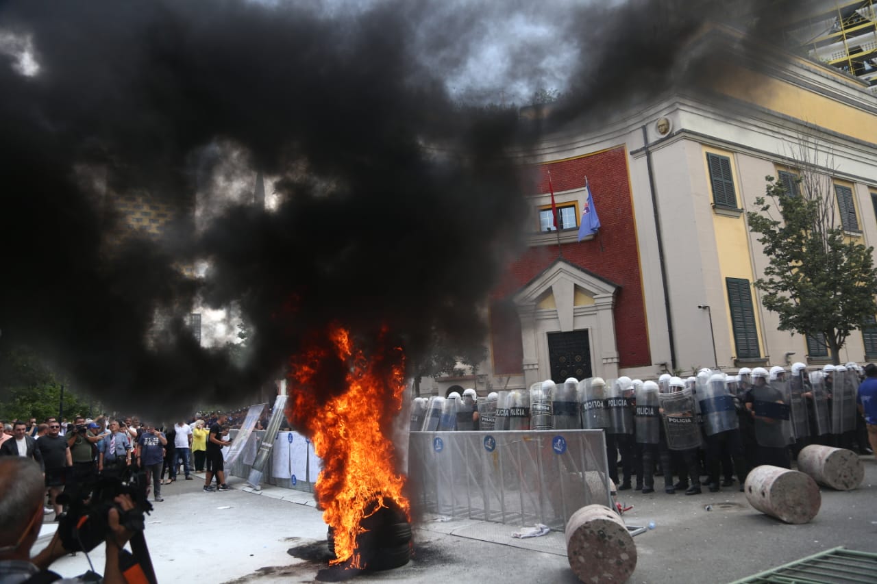 Protesta ka nisur e qetë por ka agravuar pasi protestuesit kanë vënë goma të vjetra para bashkisë dhe u kanë vënë flakën ndërkohë që kanë shkatërruar edhe gardhin metalik të vendosur nga policia. Teksa kanë tentuar të hedhin molotov drejt bashkisë, policia iu është kundërpërgjigjur turmës duke hedhur ujë.