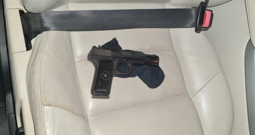 Gjatë kontrollit në mjetin tip “Range Rover”, policia gjeti dhe sekuestroi një armë zjarri pistoletë me një krehër me 7 fishekë, të cilën e mbante pa leje.
