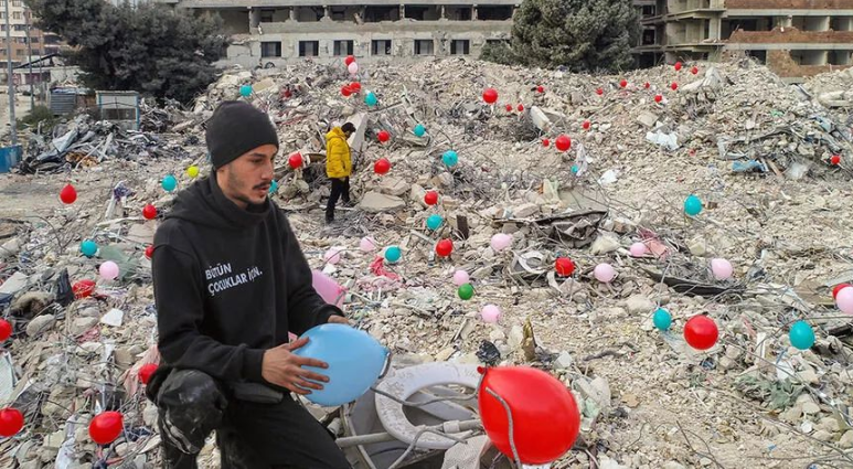 Vullnetarët në Turqi kanë vendosur tollumbace të kuqe mbi rrënojat e ndërtesave të shkatërruara, për të kujtuar fëmijët viktima të tërmeteve të fundit.