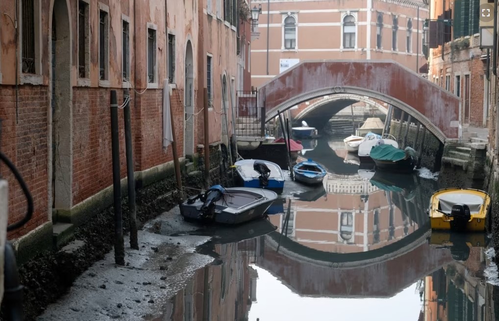 Kanalet në Venecia, të cilat normalisht përballen me përmbytje, pothuajse janë tharë, duke e bërë të pamundur lundrimin e gondolave nëpër kanale. Moti ka shtuar shqetësimet se Italia mund të përballet me një tjetër thatësirë nga ajo e verës së kaluar.